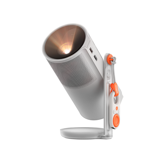 Minimalistyczna, nowoczesna forma i kompaktowy rozmiar sprawiają, że MoGo 4 przypomina wielkością kubek termiczny. Bez problemu zmieści się w plecaku lub torbie, a jego waga – zaledwie 1,3 kg – sprawia, że nie odczujesz go w podróży. Urządzenie wyposażone jest w regulowany stand, który pozwala odchylić obiektyw o 360 stopni, co pozwala wyświetlać obraz np. na suficie.